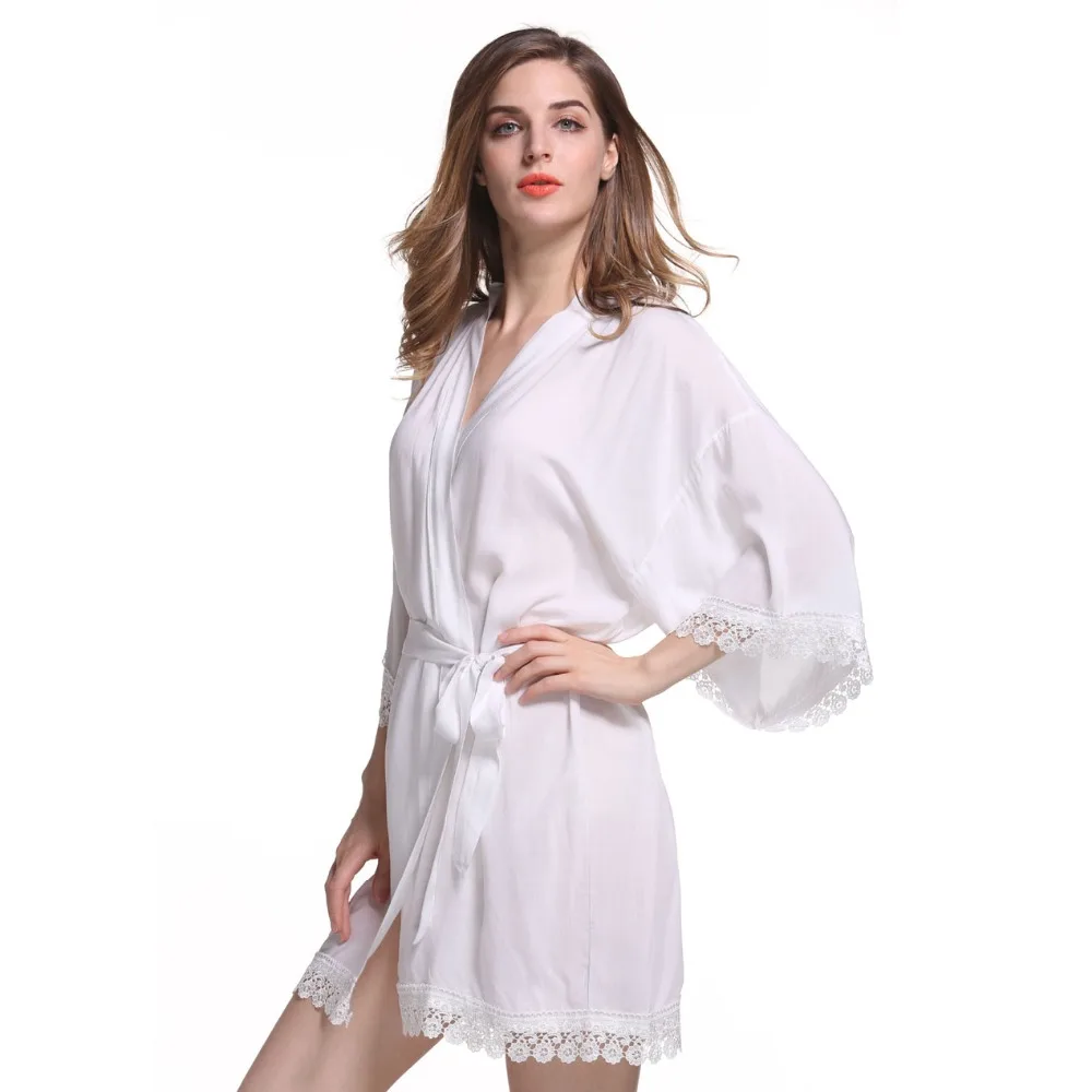 Buy New Solid Cotton Kimono Robes With Lace Trim Women